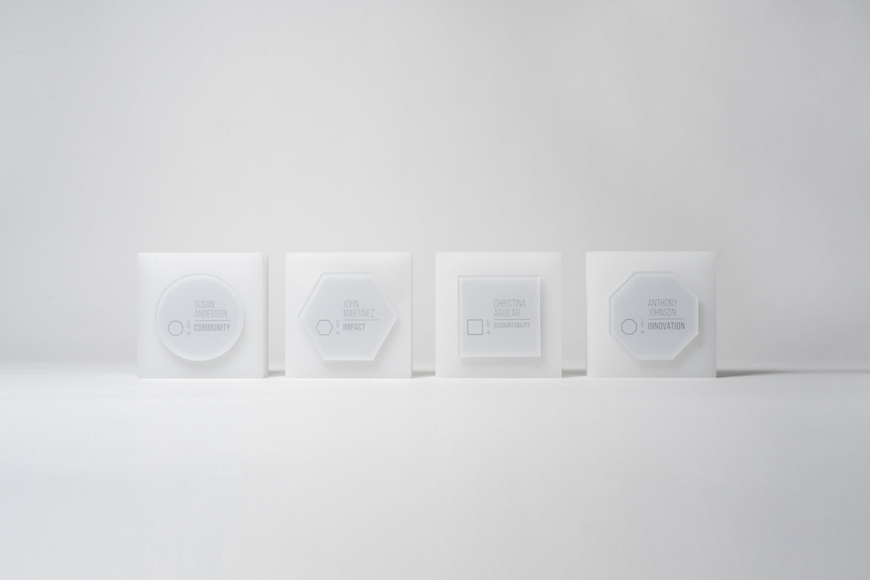 Highlight achievements with beautiful and durable acrylic awards that blend minimalist design with premium quality. These versatile awards are available in a range of geometric shapes, making them suitable for employee recognition programs, such as quarterly MVP awards or years of service recognition programs. Sleek yet robust, acrylic offers a contemporary way to honor excellence while providing customization options to reflect your organization's unique style and values.