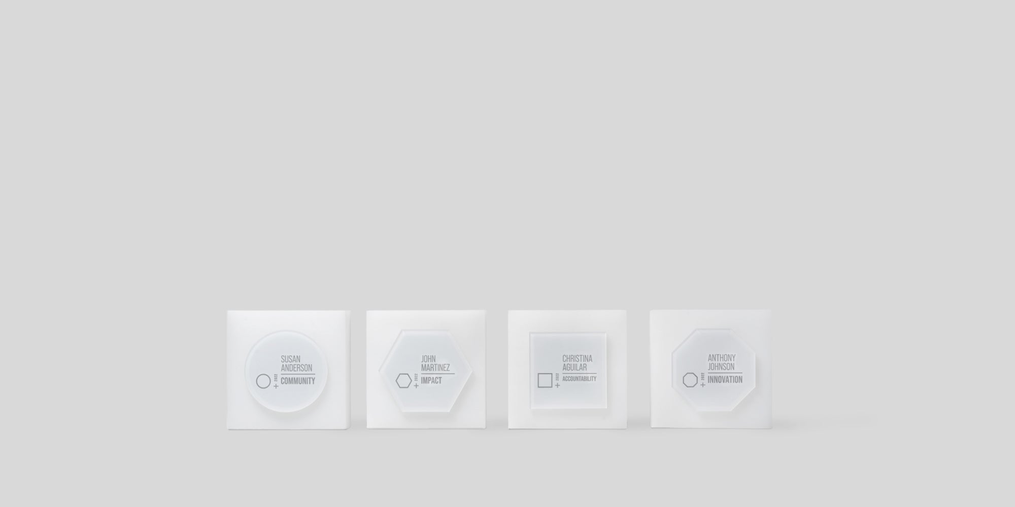 Available in four distinct shapes—square, circle, hexagon, and octagon—Glacio awards can be personalized to reflect a variety of values and meanings. They are ideal for employee recognition programs, including quarterly MVP awards and years of service acknowledgments. The versatility of acrylic allows for customization that mirrors your organization's unique style and values, providing a contemporary way to honor excellence.